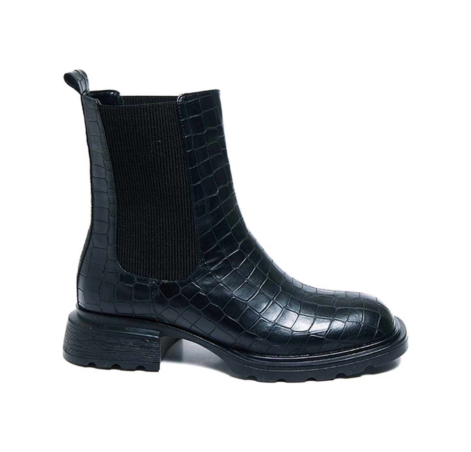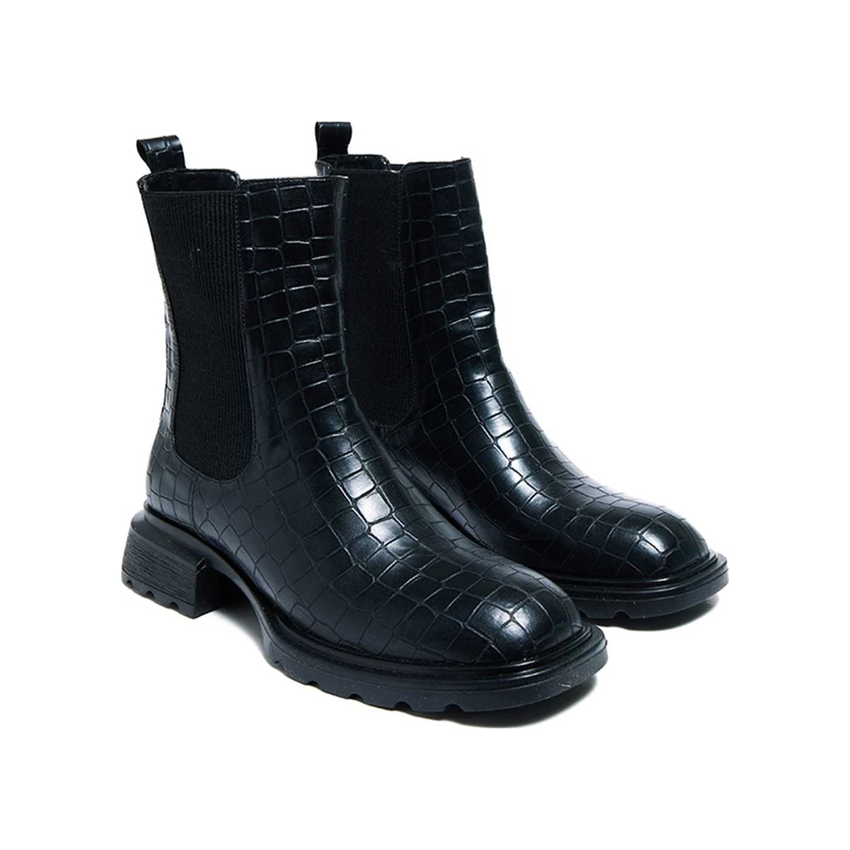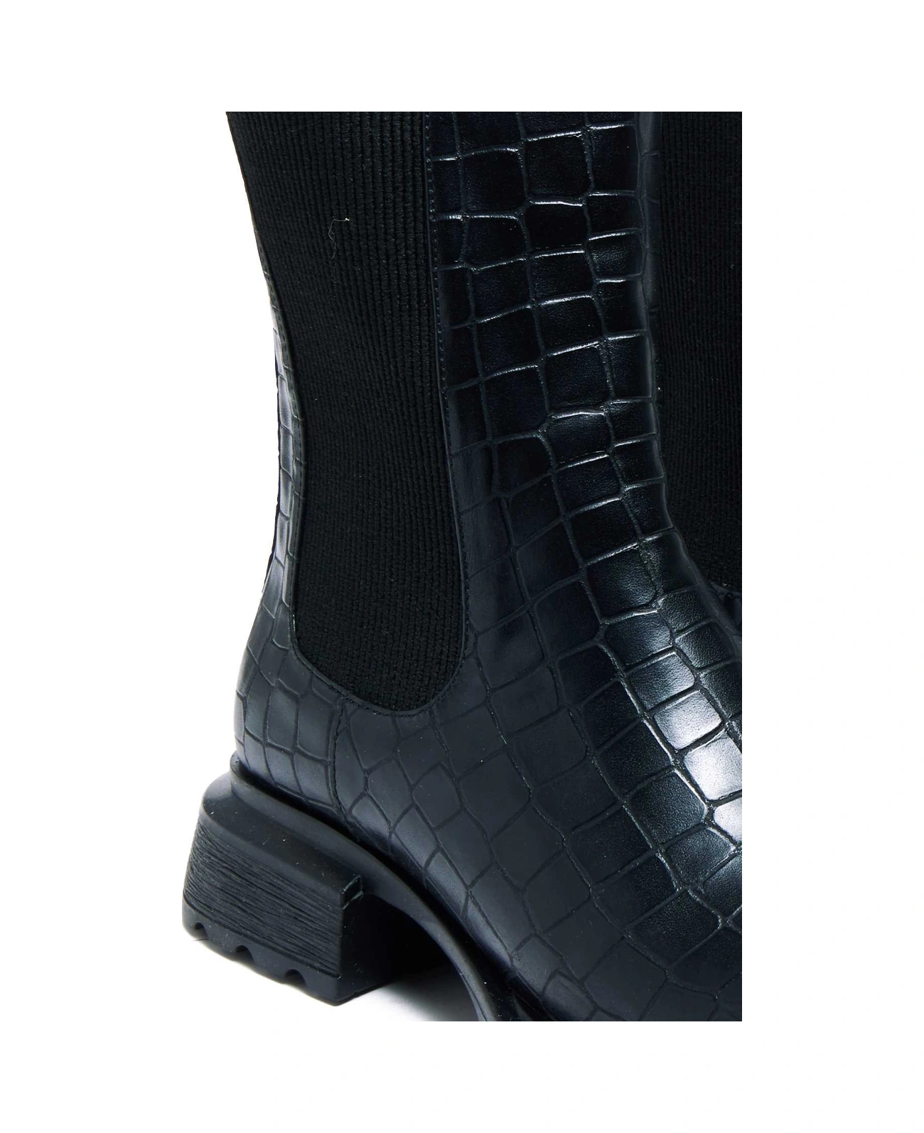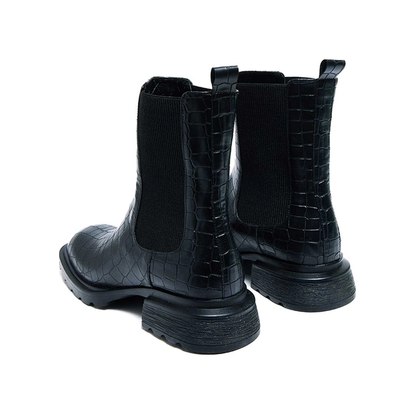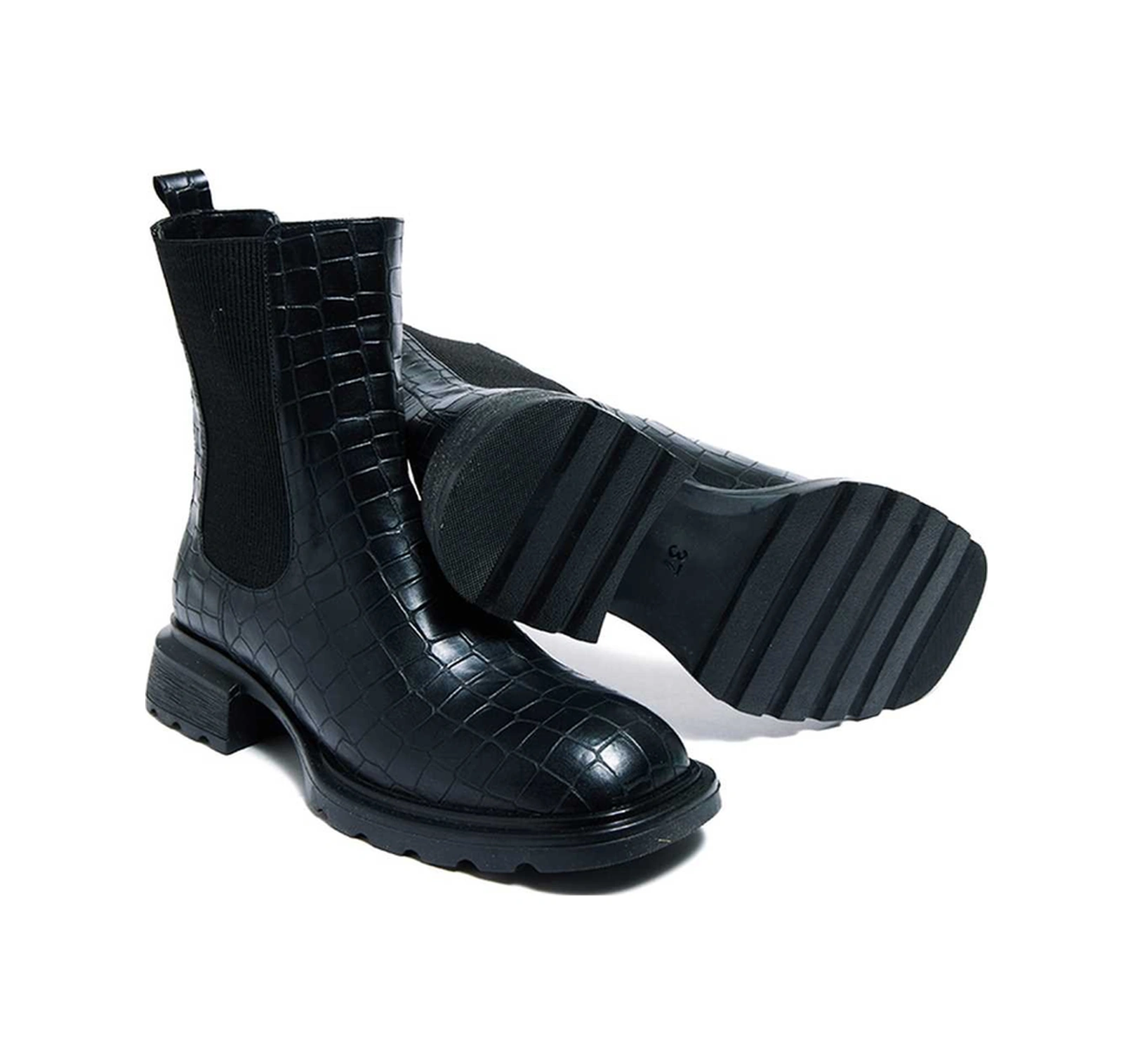 Bestello Lastikli Termo Taban Düz Bot 281-1908 Kadın Bot Siyah Kroko