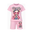 Bestie Siyah Ve Pembe Renk Kız Çocuk Takım - Ayıcık Baskılı Tişört & Şort 2'li Set Pembe