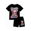 Bestie Siyah Ve Pembe Renk Kız Çocuk Takım - Ayıcık Baskılı Tişört & Şort 2'li Set Siyah