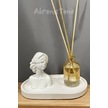 Beton Tepsi Üzerinde Çiçek Desenli Kadın Biblosu Ve Vanilya Aromalı Oda Kokusu Seti