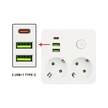 Beyaz 2500w Güç Şeridi Eu Fiş Prizi 2 Soketli Multitap Duvar Tipi Güç Şeridi Uzatma Kablosuz, 2 Usb & 1 Type-c Portlu
