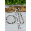 Beyaz Akik Tesbih Ve Bileklik Erkek Doğal Taş Set Bt052 Beyaz - Siyah