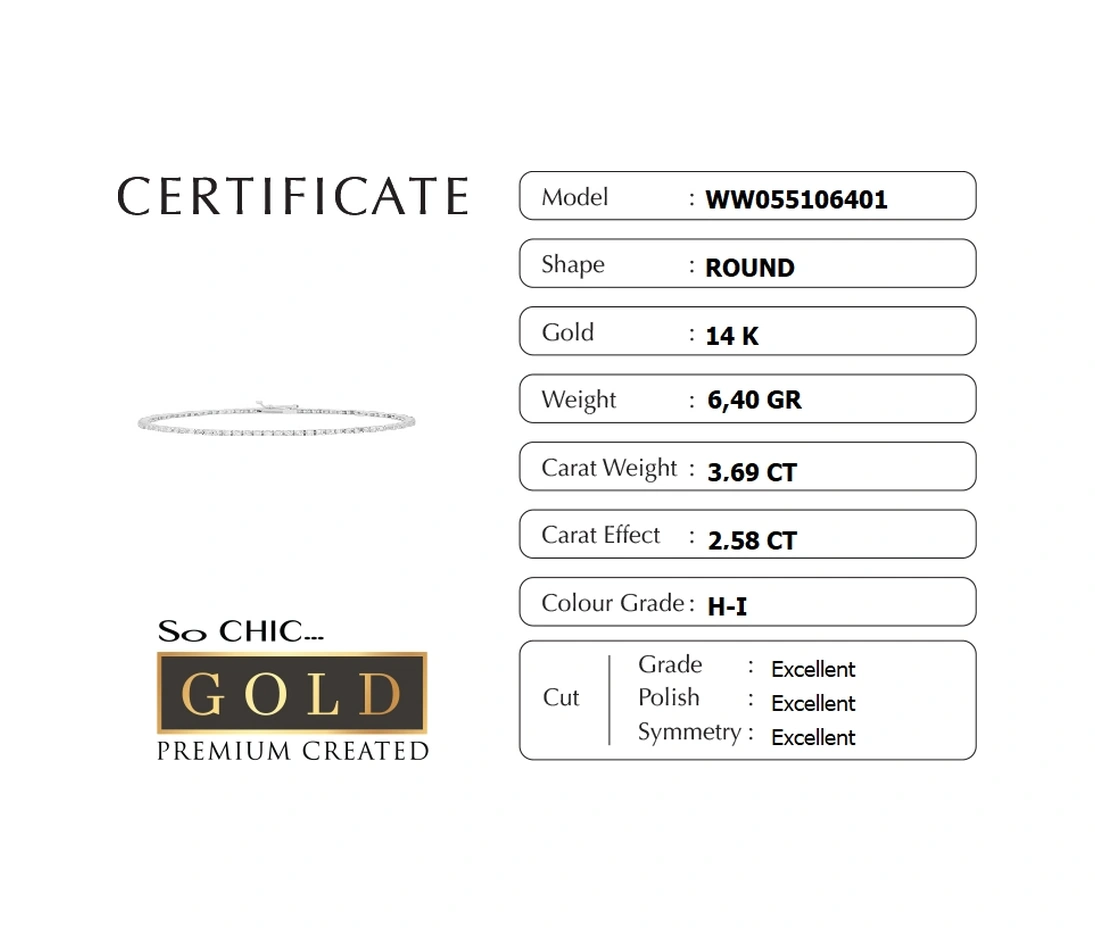 Beyaz Altın Sertifikalı Premium Created Taşlı Su Yolu Bileklik Beyaz Altın