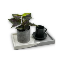 Beyaz Antrasit Tepsi Mermer Desen Görünümlü Beton Sunumluk Tepsi Dekoratif Organizer 15 Cm
