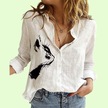 Beyaz Bayanlar Rahat Kedi Baskı Bluzlar Kadın Moda Yaka Yaka Hırka Gömlek Ince Pamuk Keten Üst