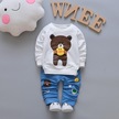 Beyaz Çocuk Sonbahar Karikatür Ayı Kucaklama Küçük Sarı Ördek Seti Yeni Rahat Kore Versiyonu Çocuk Erkek Ve Kız Pamuk Iki Parçalı Beyaz