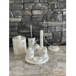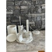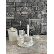 Beyaz Doğal Mermer Gümüş Rengi Aksesuarlı 9,lu Banyo Seti Beyaz