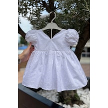Beyaz Fisto Kız Çocuk Bebek Mevlüt Pamuklu Elbise 001