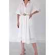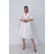Beyaz Gizli Pat Yakalı Elbise Beyaz