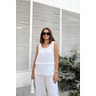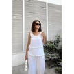 Beyaz İthal Müslin Kumaş, Basic, Katlı, Salaş Askılı Bluz & Atlet Beyaz