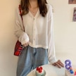 Beyaz Kadın İlkbahar Ve Yaz V Yaka Delikli Uzun Kollu Klimalı Gömlek İçin İnce Örgü Güneş Koruyucu Hırka Ceket Beyaz