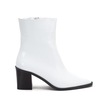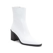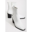 Beyaz Kadın Kalın Topuklu Bot Rugan Küt Burun Yüzüdüz-4257 Beyaz
