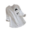 Beyaz Kadın Üst Uzun Kollu Gevşek Sevimli Şık Baskılı Günlük Giyim İçin Rahat Kesim Gömlek Beyaz