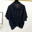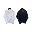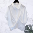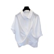 Beyaz Kadın Yaz Yaka Gömlek Tops Batwing Kısa Kollu Çapraz Düzensiz Tasarım Tek Göğüslü Casual Tops Streetweed Beyaz