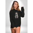 Beyaz Kaplan Kadın Erkek Siyah Kapüşonlu Sweatshirt Hoodie Siyah