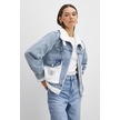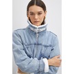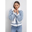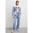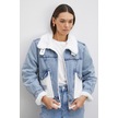 Beyaz Kemer Detaylı Kürklü Kot Mont Mavi Mavi