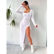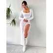 Beyaz Kriptografik İpli Bacak Dekolteli Maksi Elbise Beyaz