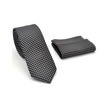 Beyaz Küçük Kare Desenli Füme Dokuma Kumaş Mendilli Slim Fit Kravat // Sdk-2511-6 Füme