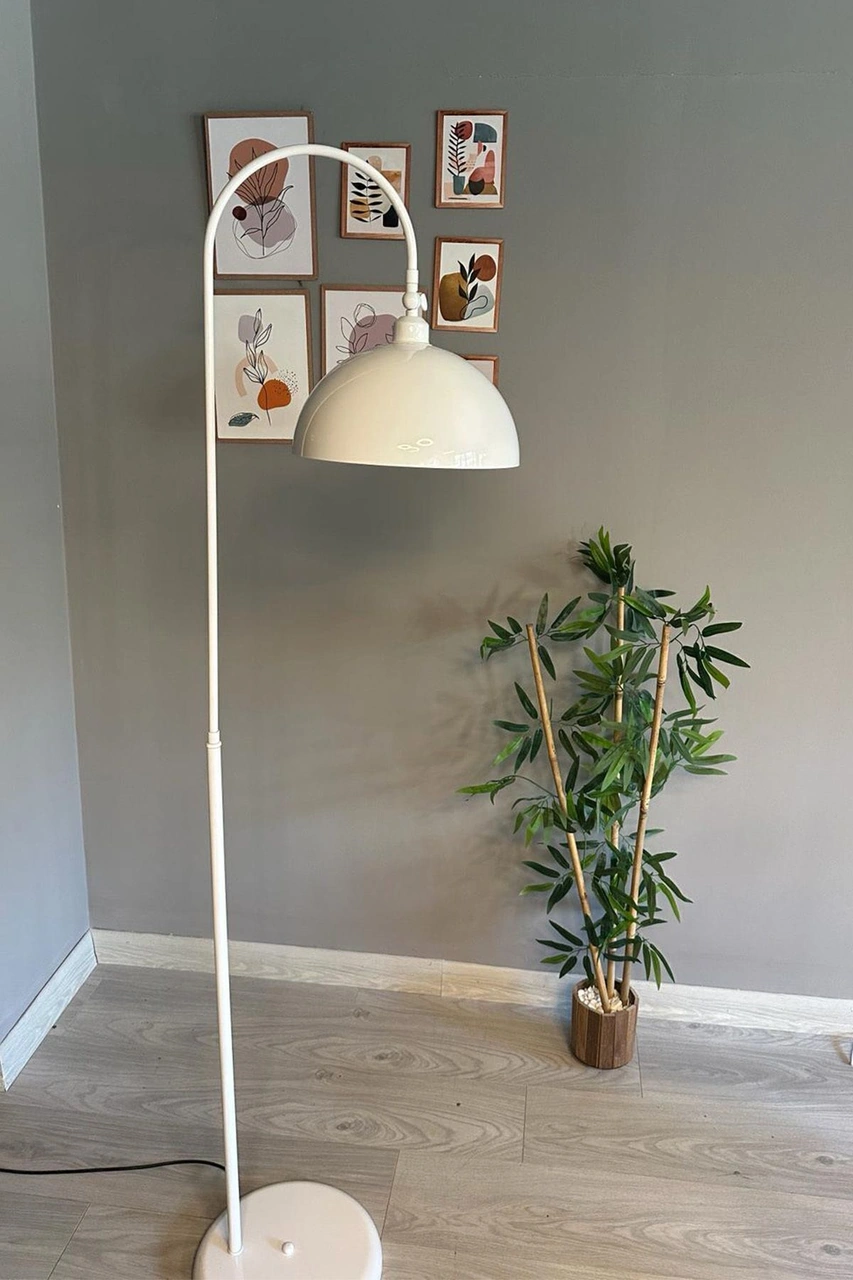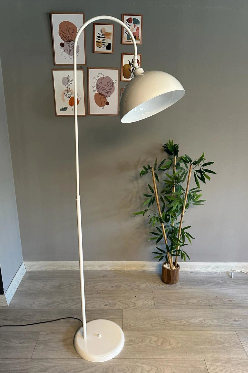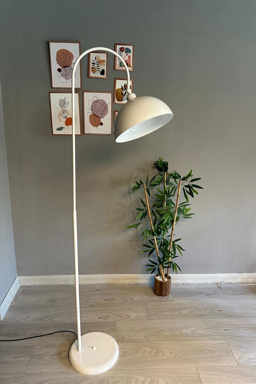 Beyaz Lambader Hareketli Başlık Modern Dekoratif Metal Oturma Odası Çalışma Odası Zemin Lambası Beyaz