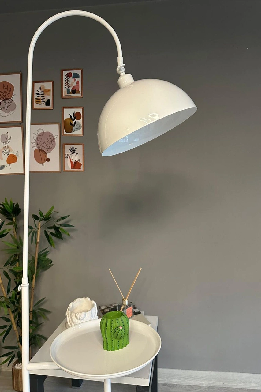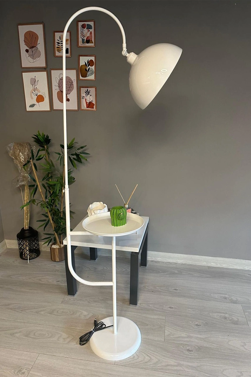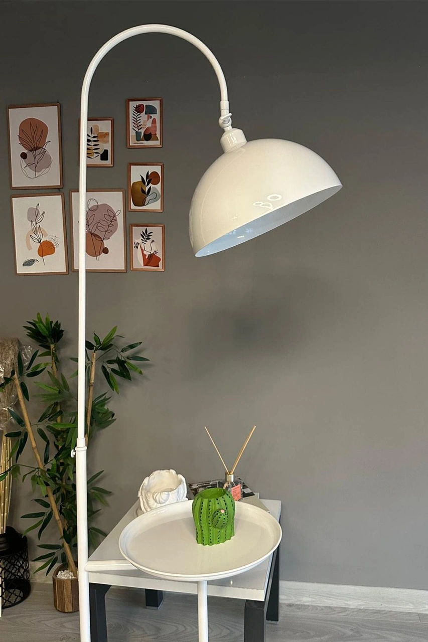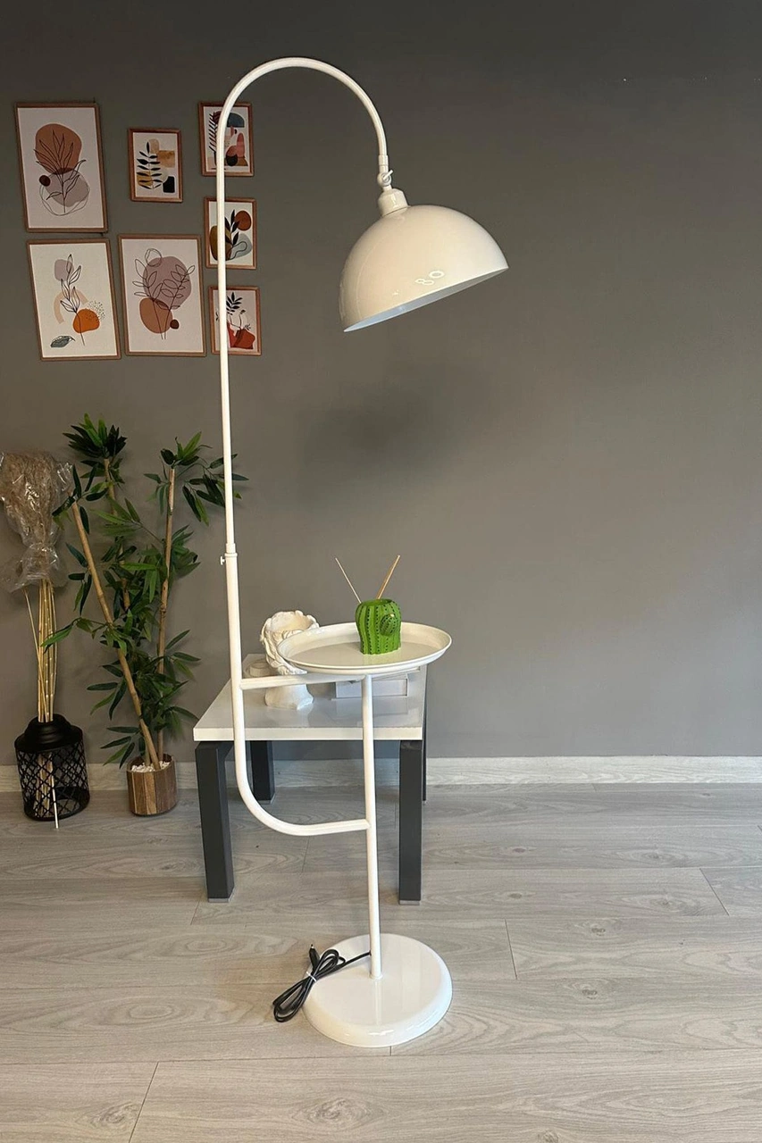 Beyaz Lambader Hareketli Başlık Sehpalı Modern Dekoratif Metal Oturma Odası Çalışma Odası Beyaz