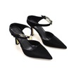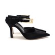 Beyaz London Burnu Kapalı Toka Detaylı Topuklu Kadın Ayakkabı Siyah Siyah