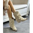 Beyaz London Önü Demir Detaylı Katlamalı Nubuk Kadın Kovboy Çizme Bej Bej