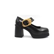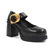 Beyaz London Poli Hafif Taban Gold Toka Detaylı Yüksek Topuklu Platform Kadın Ayakkabı Siyah Siyah