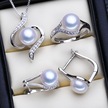 Beyaz Lsooyh Doğal Tatlı Su Inci Kolye Çiçek Kolye Moda Saplama Küpe Yüzükler Kadınlar Için Inci Takı Setleri Beyaz
