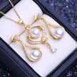 Beyaz Lsooyh Doğal Tatlı Su İncisi Kolye Kübik Zirkonya Çiçek Küpe Kadınlar İçin İnci Takı Setleri Beyaz