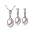 Beyaz Lsooyh Klasik Doğal Tatlı Su Inci Kolye Kübik Zirkonya Uzun Küpe Inci Takı Setleri Beyaz