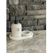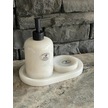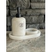 Beyaz Mermer Sıvı Sabunluk, Oval Tepsi. Katı Sabunluk 3'lü Set Siyah Aksesuarlı Beyaz