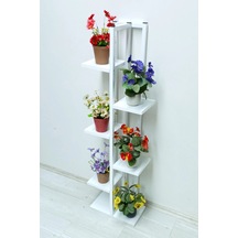 Beyaz Metal Gövdeli Ahşap Saksılık 6 Raflı Çiçeklik