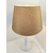 Beyaz Metal Yüksek Ayaklı Kahverengi Kumaş Şapkalı Abajur Kahverengi