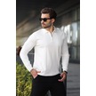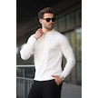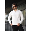 Beyaz Polo Yaka Fermuarlı Erkek Kazak E7427 Beyaz