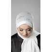 Beyaz Pratik Hazır Geçmeli Tesettür Şal Örme Kumaş Taşlı Çiçek Desenli 2118c 42