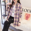 Beyaz Qooth Kadın Sonbahar Kış Fırçalanmış Ekose Bluz Retro Zarif Gevşek Uzun Kollu Gömlek Ceket Qt1910 Beyaz