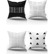 Beyaz Siyah Modern Geometrik 4'lü Dijital Baskılı Kırlent Kılıfı Seti- 4kmbs83