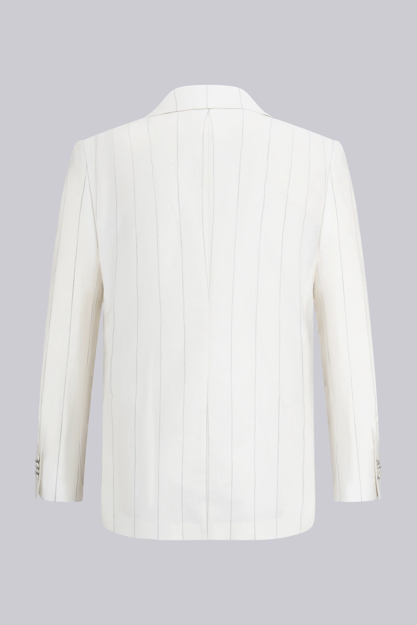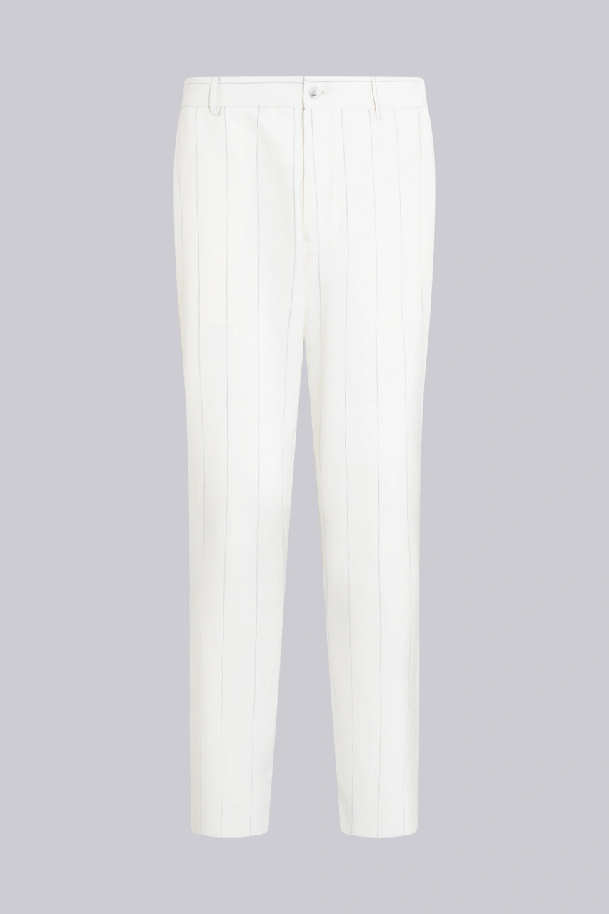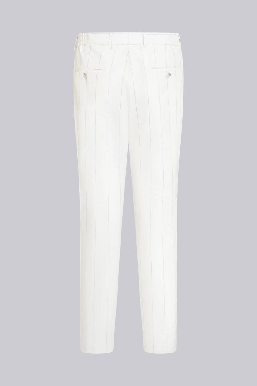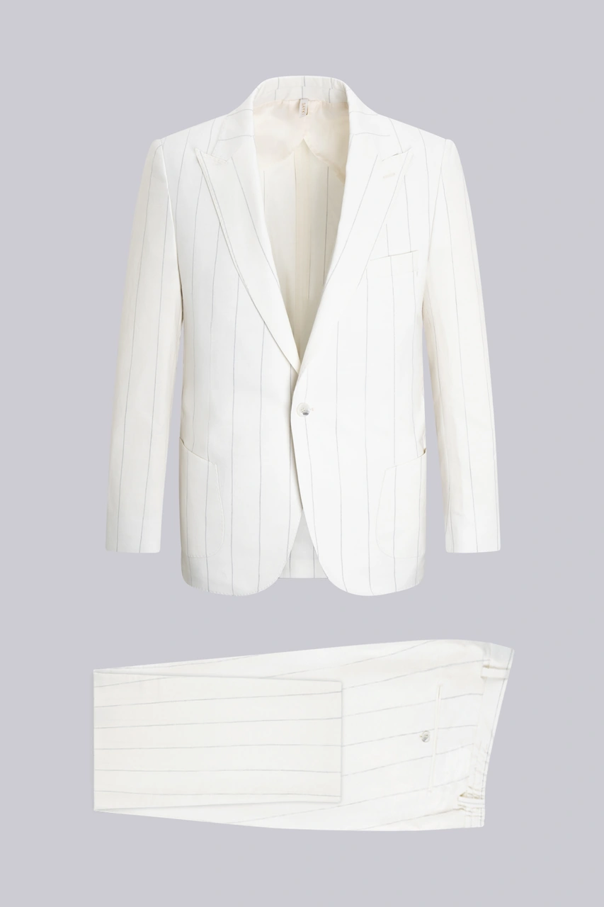Beyaz Slim Fit Sivri Yaka Çizgili Keten Casual Takım Elbise Beyaz