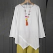 Beyaz Su Kadın O Boyun Uzun Kollu Gömlek Casual Düzensiz Hem Bluz Gevşek Çalışma Tunik Üstleri