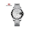 Beyaz Va Va Voom Kuvars İzle Erkekler Için 3atm Su Geçirmez Moda Kuvars Takvim Hareketi Paslanmaz Çelik Elbise Ziyafet Chronograph Saatler Beyaz