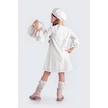 Beyaz Valon Kesim Şapkalı-çantalı Elbise Beyaz