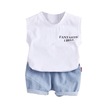 Beyaz Yaz Erkek Bebek Kız Rahat Kolsuz Mektup Dinozor Baskı Yelek Üstleri + Şort Takım Elbise Kostüm Seti Beyaz