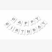 Beyaz Zemin Gümüş Happy Birthday Banner