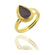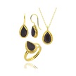 Beyisa Güneş Taşı Serisi Sarma Damla Kesim Siyah Oniks 22 Ayar Altın Kaplama Kadın Üçlü Set