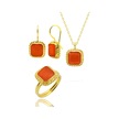 Beyisa Güneş Taşı Serisi Sarma Kare Kesim Turuncu Renkli 22 Ayar Altın Kaplama Kadın Set