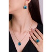 Beyisa Güneş Taşı Serisi Yuvarlak Mavi Renkli Kadın Otantik Gümüş Üçlü Takı Seti