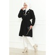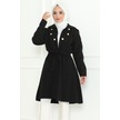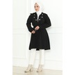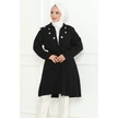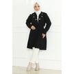 Medine İpeği Mevlana Kesim Cepli Kuşaklı Bol Büyük Beden Ferace Siyah
