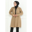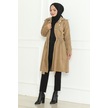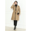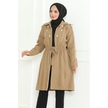 Medine İpeği Mevlana Kesim Cepli Kuşaklı Bol Ferace 4000-vizon Bej