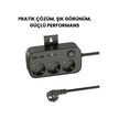 67w Gan Hızlı Şarjlı Kablolu Priz 3x Type-c + 1x Usb + 2'li Priz 1.5m Uzatma Kablosu Siyah 1,5 m