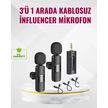 Universal 600mah Kablosuz Çiftli Yaka Mikrofonu Type-c & Lightning Alıcılı İphone Android Uyumlu